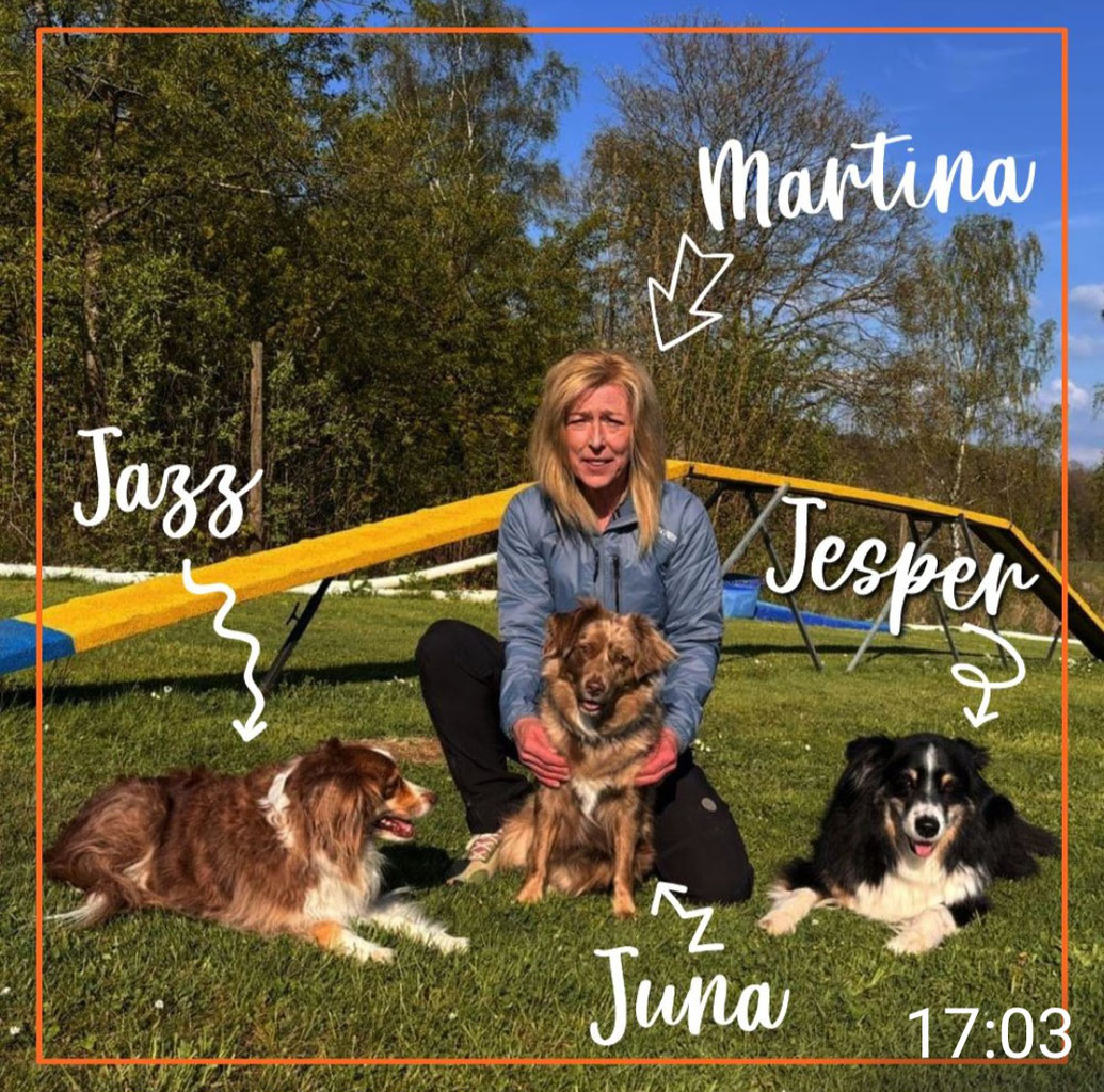 "Hallo, ich heiße Sonja und wohne in Ferndorf mit meinem Mann und unseren 4 Hunden. Mit den beiden Border Collies Rudy und Scooper starte ich im Agility. Die anderen beiden sind unsere Rentner-Boys. Ich freue mich auf neue Mensch-Hunde-Teams denen ich diese tolle Teamsportart zeigen darf!"